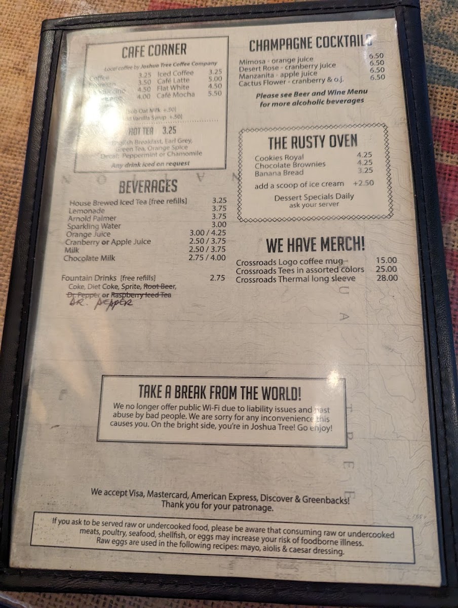Welcome to Crossroads Cafe, a charming spot located at 61715 29 Palms Hwy in Joshua Tree, CA. This delightful cafe offers a menu that reflects its unique character, inviting diners to experience comfort food with a twist.
